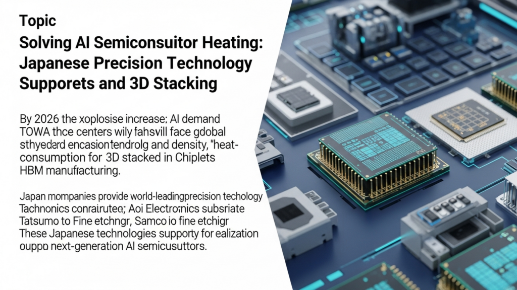 概要 2026年、AI需要の爆発的な増加により、データセンターは「発熱・電力・密度」という物理的限界に直面しており、その解決策として「チップレット」と「3D積層」技術が注目されています。日本の企業は、この分野で世界をリードする精密技術を提供してお... -