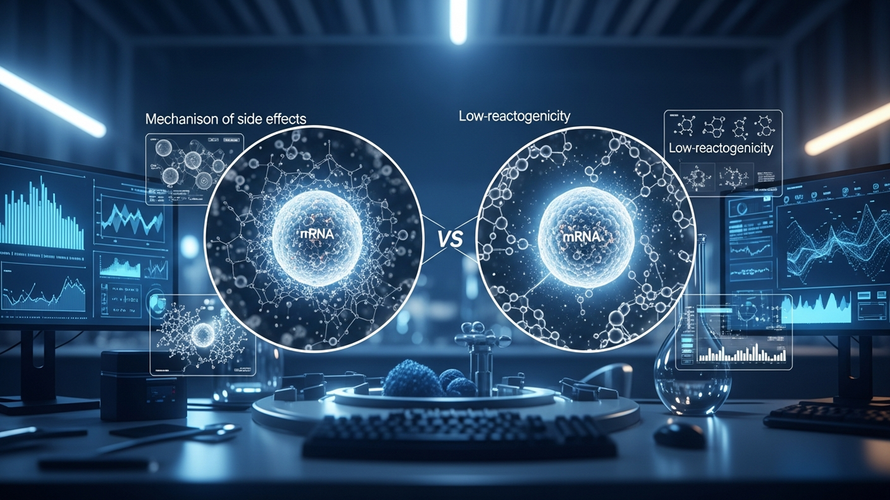 - 低反応原性LNPの同定: マウスモデルを用いた詳細な実験により、研究チームは、発熱や活動性低下といった副反応を軽減できる特定のイオン化脂質「Lipid 5」を同定しました。この新しいLNP(脂質ナノ粒子)製剤は、mRNAを効率的に細胞に送達する能力を維持しつつ、不必要な炎症応答の誘発を抑制します。